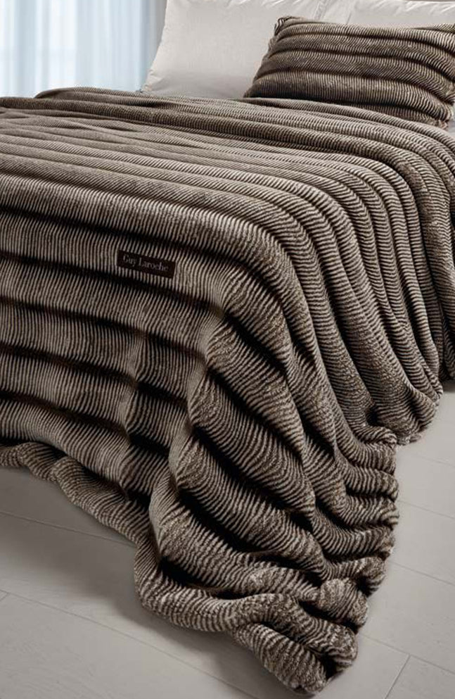 240× 260 cm , 100% poliészter műszőrme barna- fekete csíkos ágytakaró